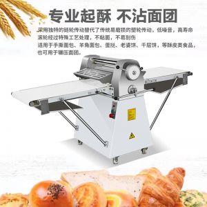 LSP-520酥皮机,采用独特的链轮传动替代了传统易磨损的塑轮传动,低噪音,高寿命滚轮经过特殊工艺处理,不粘面,不易刮伤适用于手撕面包、羊角面包、蛋挞、老婆饼、千层饼,等酥皮类食品,也可用于辗压面团。