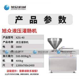 XZG-40液压灌肠机,液压灌肠机,可升降灌肠馅管,液压气动式灌肠。灌注较干的馅料效率更佳,各种美食由你制作。旭众灌肠机,为灌肠而生,健康更美味。
