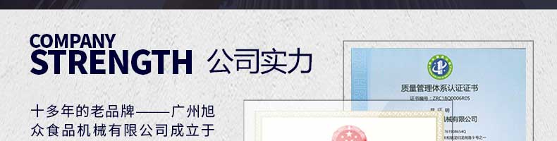 广州旭众食品机械有限公司是一家集科研开发,生产设计,营销服务为一体的现代化生产企业。现代化生产车间,精湛制造技术,所产机械历经市场重重考验,不断赢得海内外客户的赞誉。
