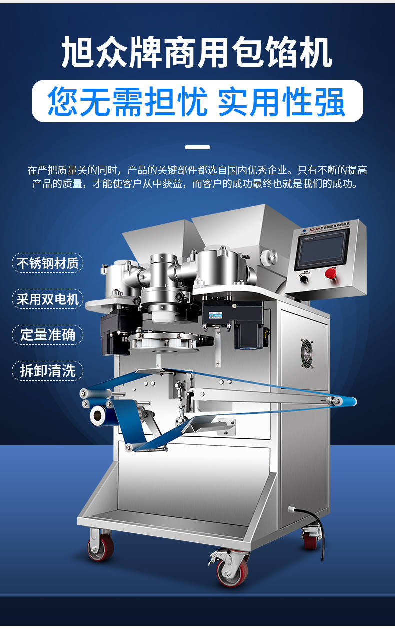 SZ-69型多功能自动包馅机,馅斗/面斗,可整个拆卸清洗,增加了自动拔料功能。月饼凤梨酥红桃裸汤圆南瓜饼软馅饼。在严把质量关的同时,产品的关键部件都选自国内优秀企业。只有不断的提高产品的质量,才能使客户从中获益,而客户的成功最终也就是我们的成功。